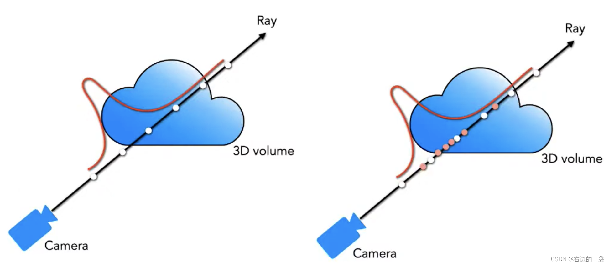 如上述采样方法所说,因为是均匀采样,我们对空气和实体的体素关注度都是差不多的,但是这并无必要,空气上采样点少了也不会怎么样,而实体上如果采样点增多,图片就会更加清晰,因此我们设计了以下算法来进行优化。