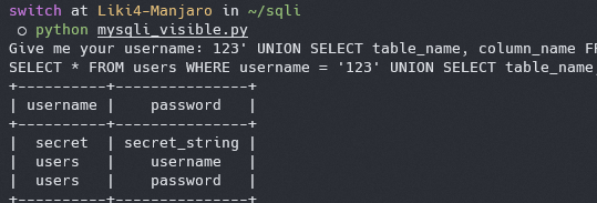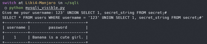 而我们传入的字符串构成了全新的语法正确的语句,并完成了一次查询!
